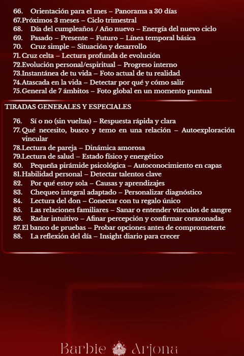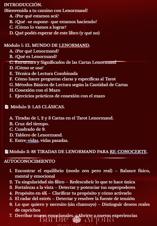 El manual esencial de Lenormand creado por Barbie Arjona. 88 tiradas poderosas para el autoconocimiento, la claridad emocional y la toma de decisiones. Recuperá tu confianza y energía a través de la lectura consciente de las cartas.