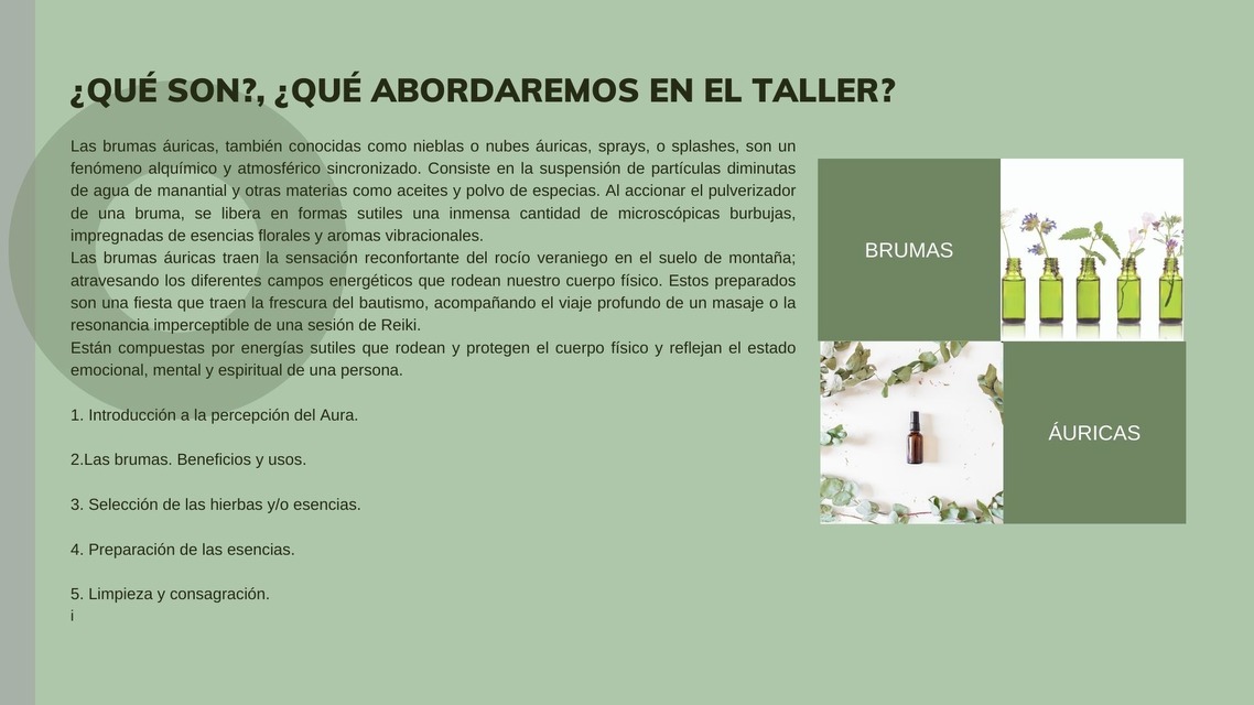 Taller de brumas áuricas.