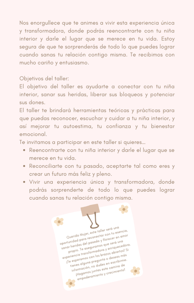 Taller de sanación de la niña interior